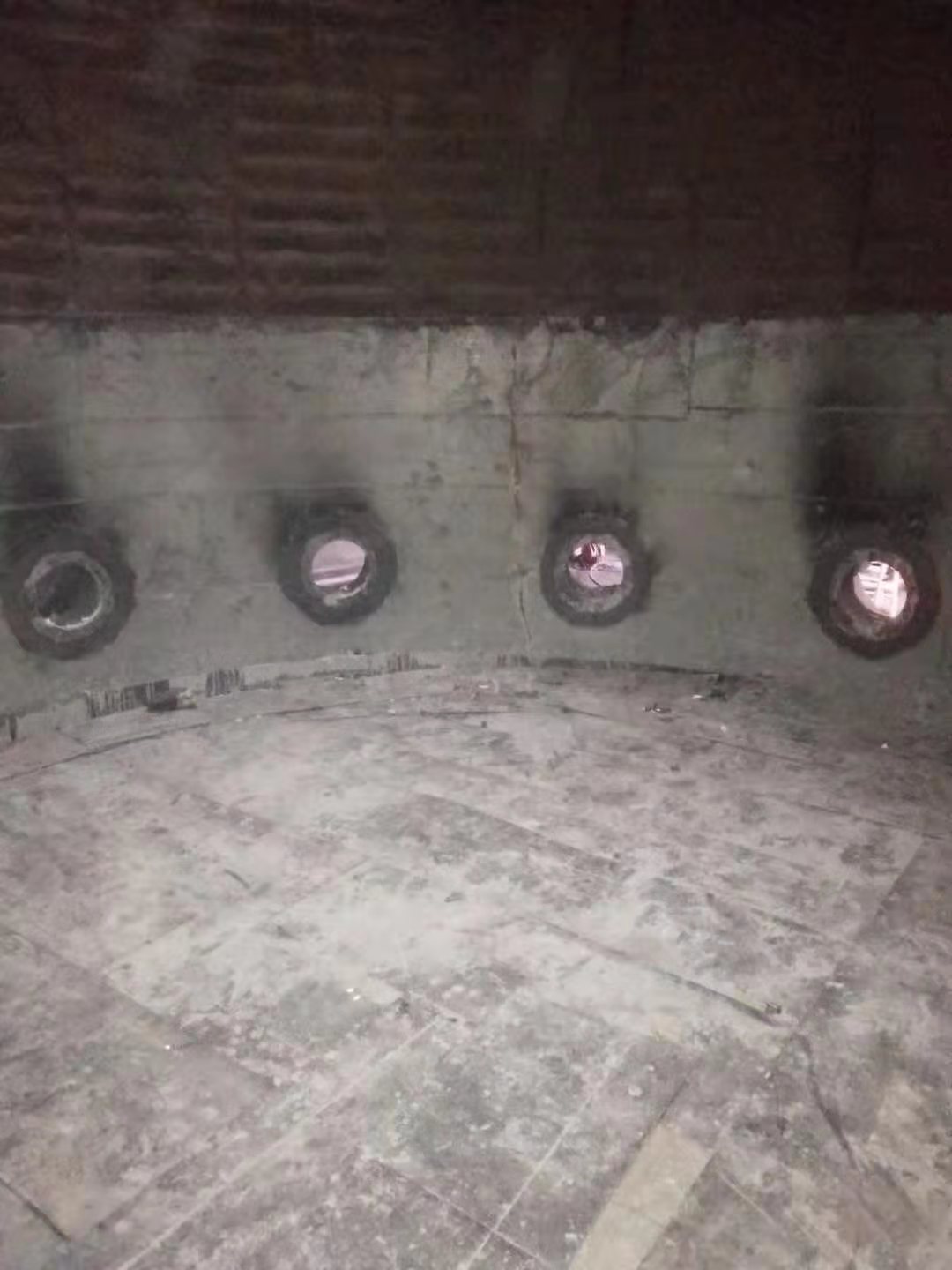 本次工程自2019年10月26日開(kāi)始,包括爐底、爐缸、風(fēng)口區(qū)澆注及爐身噴涂等。因高爐內(nèi)部侵蝕嚴(yán)重,高爐爐底僅保留兩層碳磚,精冶源在此基礎(chǔ)上采用具有優(yōu)良親和性能的塑性相碳磚澆注料整體澆注,與舊有碳磚形成有機(jī)整體。爐缸部分無(wú)碳磚無(wú)縫緊貼冷卻壁整體澆注,整個(gè)爐底爐缸部分建立了完整高效的傳熱體系。