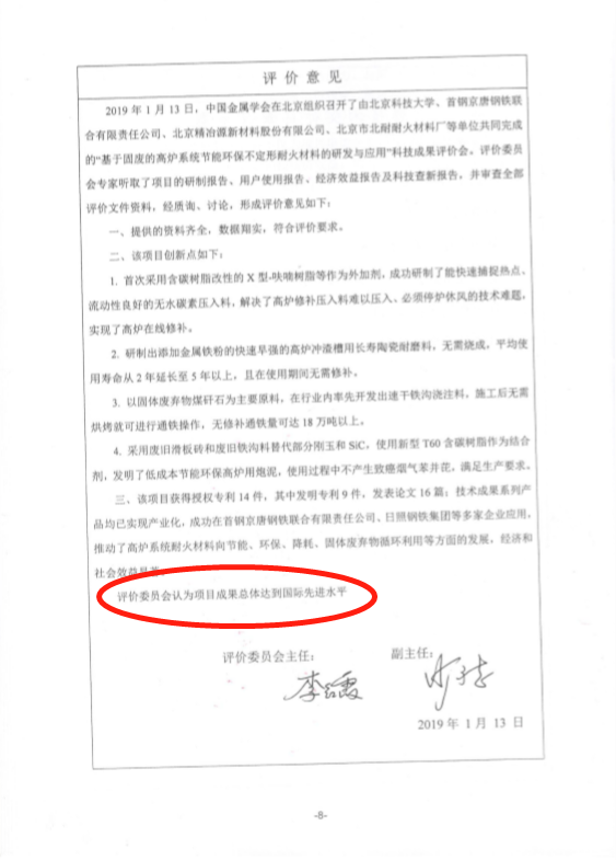 精冶源新型環(huán)保炮泥是精冶源參與的科研項目——“基于固廢的高爐系統(tǒng)節(jié)能環(huán)保不定形耐火材料的研發(fā)與應(yīng)用”的重大科研成果,曾獲得中國金屬學(xué)會的高度評價。
